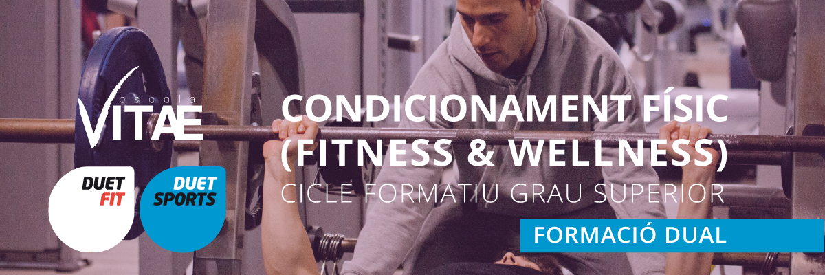 T’agrada el fitness? Vols estudiar i treballar? Et presentem el Cicle Formatiu de Grau Superior en Condicionament Físic en modalitat dual (opcional). Escola Vitae i Duet