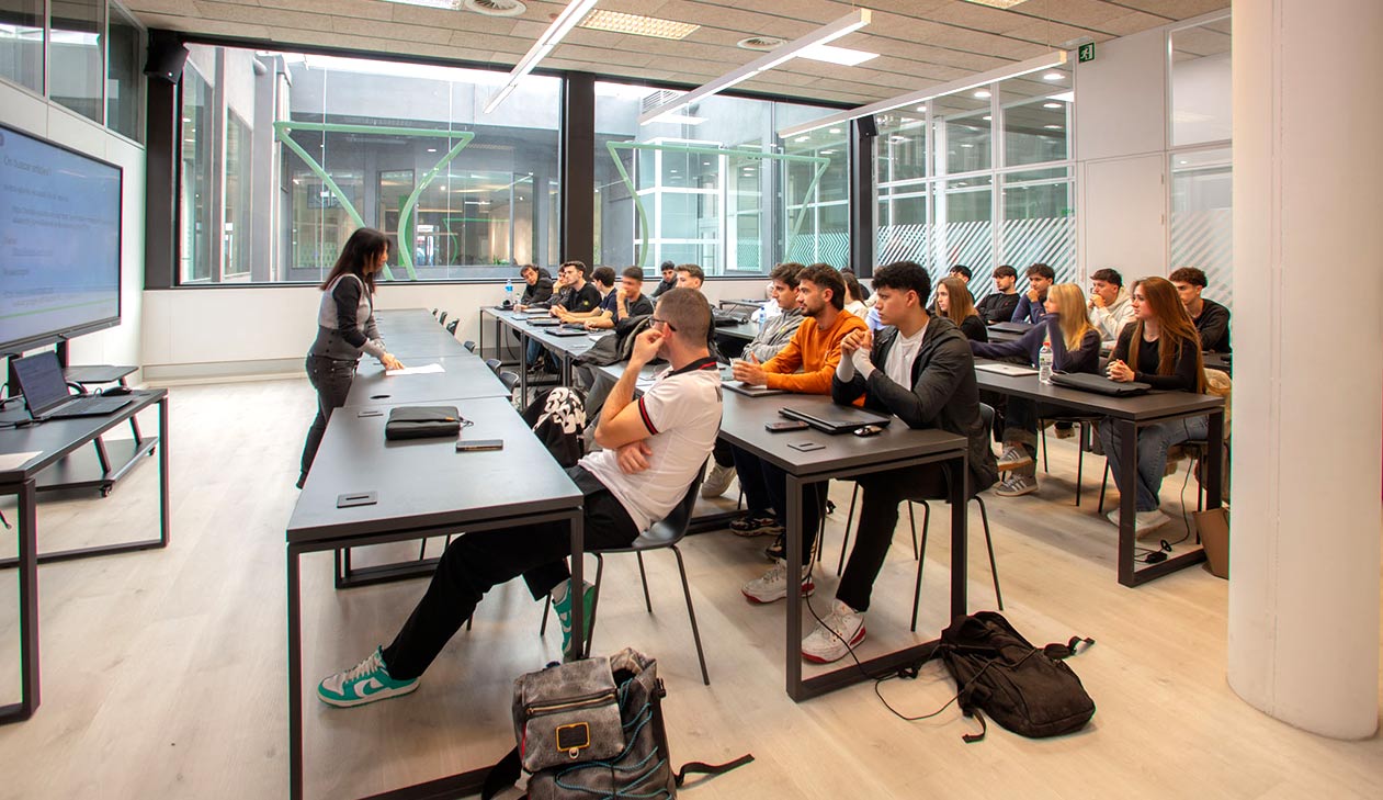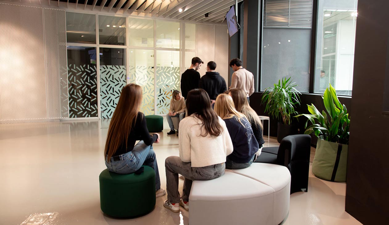 En sus más de 700 metros cuadrados de espacios comunes, el alumnado puede disfrutar de todo tipo de servicios y comodidades: biblioteca, cafetería, zona de exposiciones y el ágora. Espacios pensados para el desarrollo de los estudios, la vida social y el crecimiento personal de los y las estudiantes. Dispone del equipamiento y la tecnología necesaria para fomentar el talento de cada estudiante a través de la realización de todo tipo de proyectos. Aquí el alumnado tiene la oportunidad de formarse en un centro innovador, diseñado con el objetivo de despertar su inspiración y aprovechar al máximo su potencial creativo.