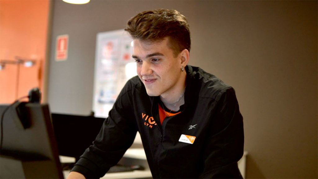 “La clase de hoy tiene 4 partes. Trabajaremos siempre sobre los 85rpm, ¿de acuerdo?”. Está a punto de empezar la clase de spinning en el gimnasio VivaGym de la calle Bruc de Barcelona. Lluís Edo está al mando y da las instrucciones a sus alumnos. Lluís es estudiante del Grado Superior de Acondicionamiento Físico en Escuela VITAE. En su segundo año, se ha acogido a la posibilidad de realizar sus estudios mientras realiza prácticas. Pero no son unas prácticas curriculares normales. “Las prácticas del formato Dual, son unas prácticas especiales, mucho más largas y remuneradas que permiten al estudiante compaginar sus estudios en el aula con un trabajo a medida que le proporciona VITAE y que le aporta más experiencia” apunta Éric Chalamanch, el responsable de la relación entre Vitae y las empresas del sector del fitness.